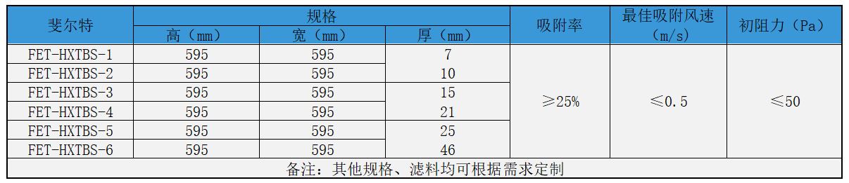 活性炭板式過濾器濾網(wǎng)技術(shù)參數(shù):